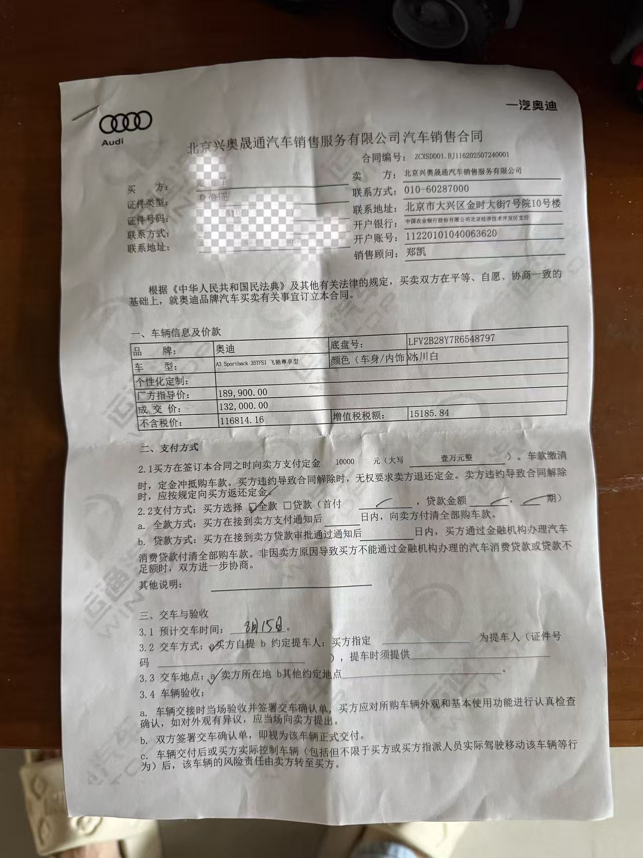 多位一汽奥迪车主近日向新京报贝壳财经记者反映,其在北京大兴一汽奥迪4S店北京兴奥晟通汽车销售服务有限公司(下称“兴奥晟通公司”)购车并付款后,4S店交车却一再拖延。目前有20余位车主陷入提车困局。