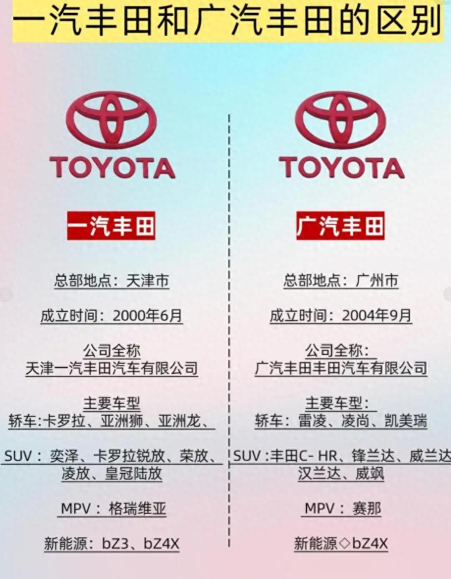 当你在4S店看到卡罗拉和雷凌、RAV4荣放和威兰达并排停放时,是不是也会疑惑“这俩丰田到底差在哪”?一汽丰田与广汽丰田,这对“同门师兄弟”看似共享丰田技术,实则在车型布局、设计细节、配置策略上藏着不少“小心思”。从天津到广州的南北布局,从2000年到2004年的时间差,最终让它们走出了两条风格迥异的产品路线——一汽丰田偏“经典稳妥”,广汽丰田走“年轻运动”,选车时盯紧这几点,再也不会被“同款不同标”绕晕。