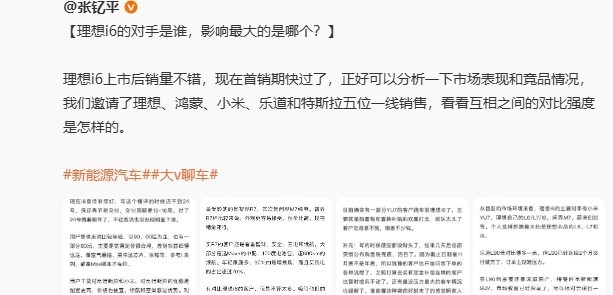 【CNMO科技消息】理想i6上市后取得了不错的销量成绩,在首销期快结束之前,有博主对该车的市场表现和竞品情况进行了分析。据CNMO了解,其采访了理想、鸿蒙智行、小米、乐道和特斯拉五位一线销售,其中,小米汽车销售明确表示,部分YU7客户因为购置税等原因跳车到理想i6。