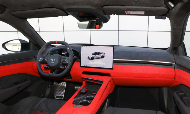 极氪001 FR版内饰由黑色和红色组成,内饰还提供大量翻毛皮材质,符合自身的定位,方向盘采用平底式,液晶仪表的尺寸为13英寸,中控屏幕的尺寸为15英寸,座椅采用Alcantara翻毛皮材质,整体配置也是比较丰富,符合自身的价格。