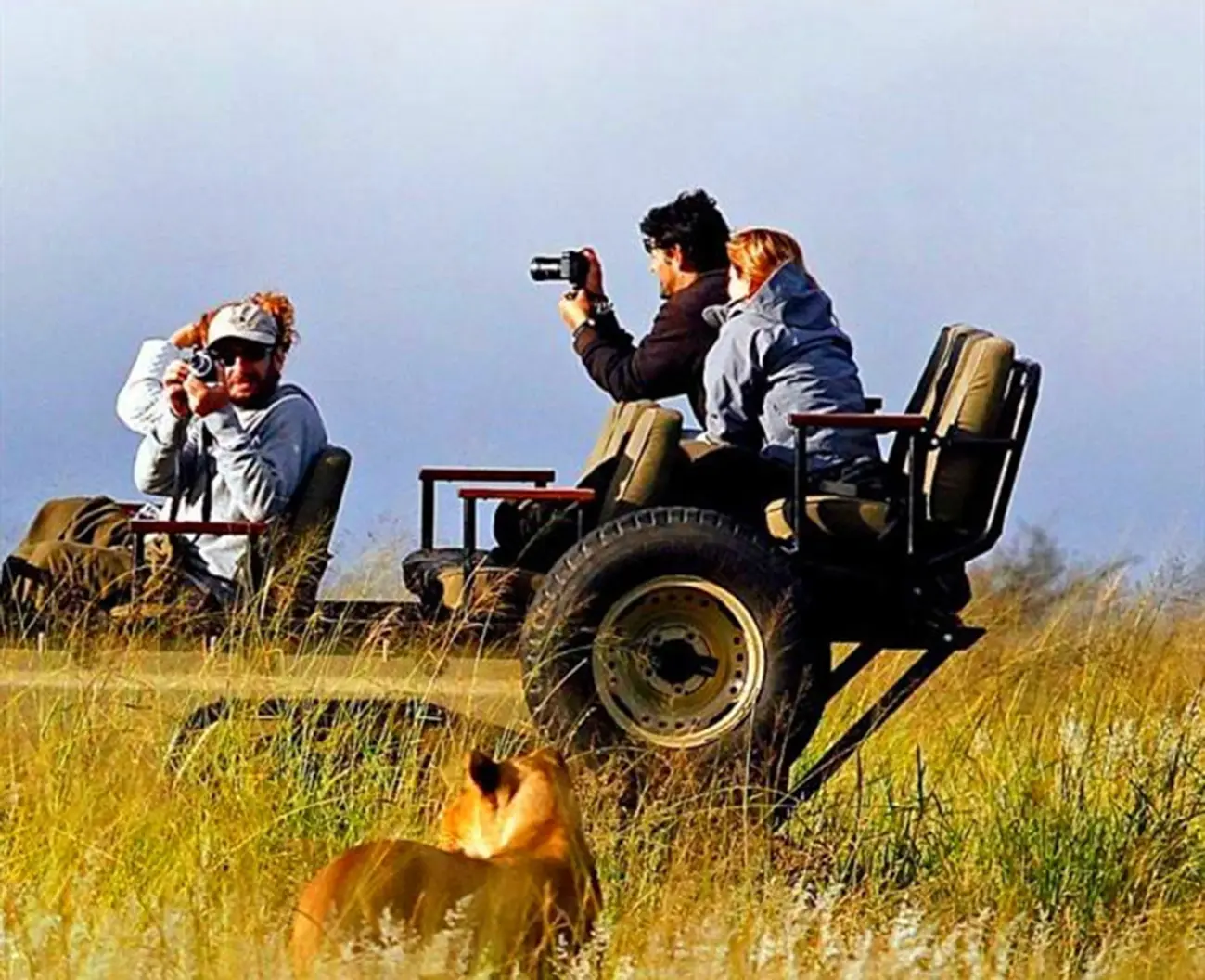 咔嚓、咔嚓!敞篷越野车上,摄影师的长焦镜头对准了草丛中慵懒的母狮。距离不过十米,母狮的金色瞳孔扫过车身,耳朵微微转动,随即又懒洋洋地闭上了眼睛,仿佛眼前这轰鸣作响的敞篷车和上面探头探脑的人,不过是一阵无关紧要的风而已。
