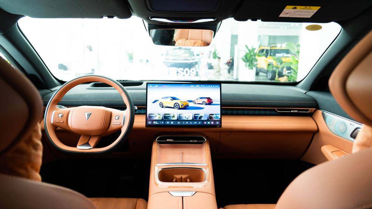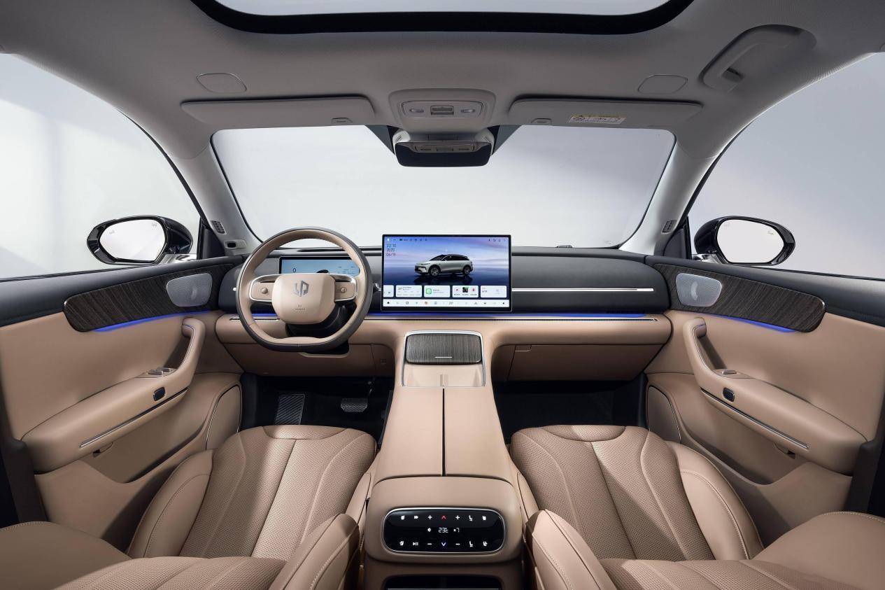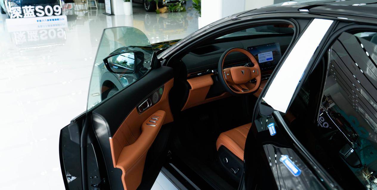 全新深蓝S07的座舱则是采用了豪华游艇设计,内饰软包面积达到10.7平方米,主要覆盖车门、中控台、座椅等常接触区域,采用超纤绒感麂皮材质和皮质打孔工艺,搭配可以随音乐律动的氛围灯,有一种科技豪华的感觉。中控屏和AR-HUD尺寸上虽然稍小,但并不影响观感。全新深蓝S07把功夫更多用在了细节上,比如中控向日葵屏能够向驾驶位或副驾一侧旋转,前排采用了双零重力座椅配石墨烯理疗加热,全景天幕还提供了物理遮阳帘,还有智能冷暖箱,这几项功能都是用户呼声比较高的。