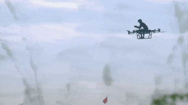 何小鹏跟赵德力第一次碰面,就坐上了一个前后两座的八旋翼飞行器,从一个类似仓库的地方向外飞出去在低空兜了一大圈。