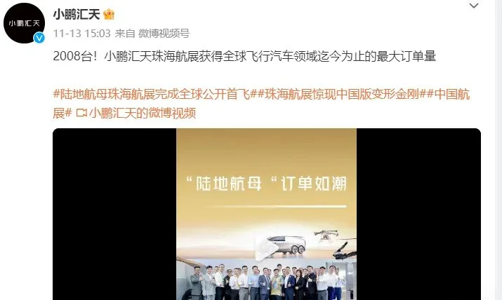 去年的珠海航展上,小鹏汇天卖出2008台,是全球飞行汽车领域迄今为止的最大订单量,之后的广州车展上,小鹏汇天的“陆地航母”又出尽风头。