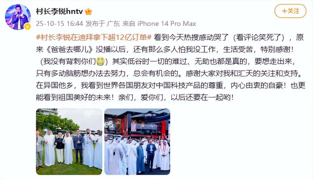 今年10月小鹏汇天在迪拜签下的超12亿订单,不仅让“陆地航母”飞行汽车在国际市场上大放异彩,也让小鹏汇天背后另一个跨界达人——李锐爆火出圈。