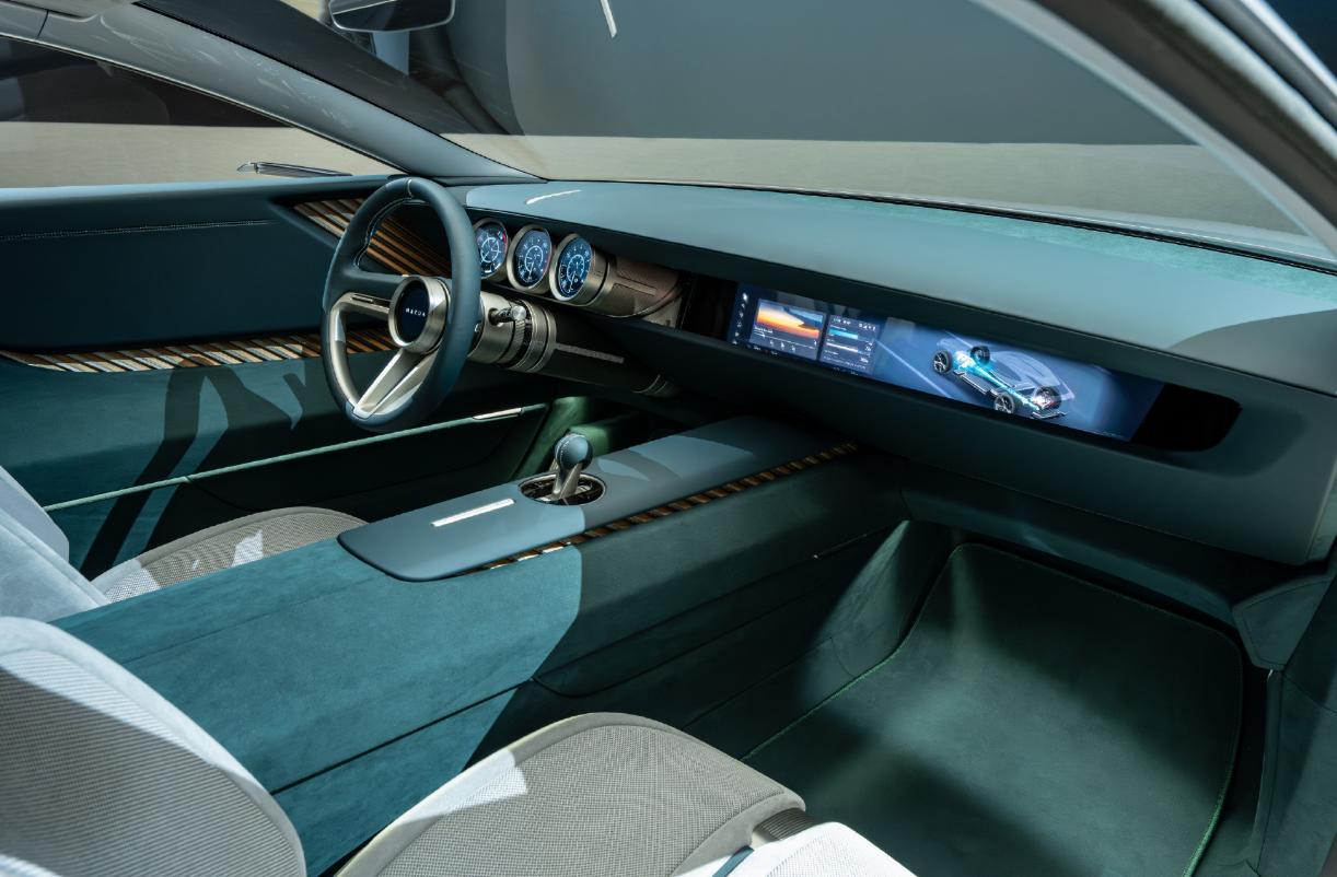 虽说是一款概念车,但是内饰设计与很多量产车型的相似度达到了70%左右,炮筒仪表盘的设计,依然追求的是操控感。此外,贯穿样式的大屏以及副驾驶娱乐屏幕也是当下的主流。整个主驾驶位,副驾驶位被中央通道隔开,前排隐私性表现足够理想。值得一提的是,我们发现内部缺少了实体物理按键,所以该新车必将搭载智能数字座舱设计,依靠语音激活车载配置,这也是马自达一次比较大的尝试,目前国内绝大多数的马自达新车电气化缺席比较明显。