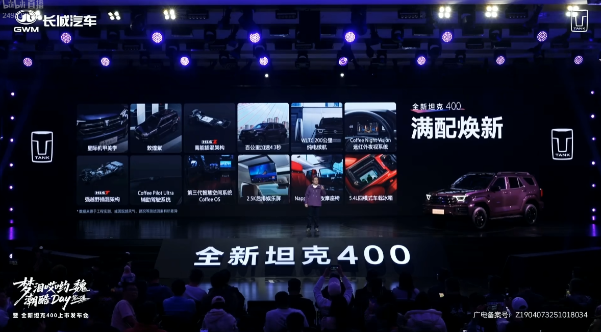【CNMO科技消息】11月6日,坦克品牌官方宣布旗下全新坦克400正式上市。