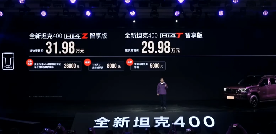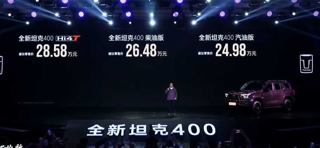 最后是价格信息,全新坦克400的起售价格为24.98万元。