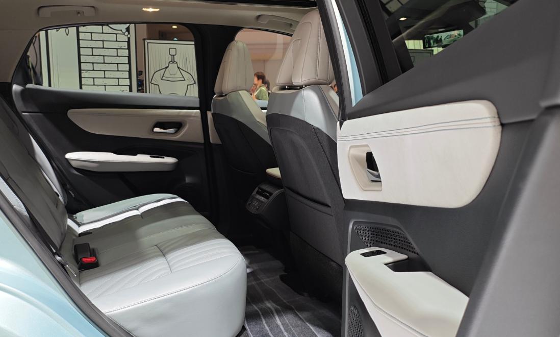 从侧面来看,这款日产ARIYA艾睿雅采用了双色车身构造,颜值有了明显提升。五辐的熏黑轮毂同样显得时尚感十足。值得一提的是,这款新车采用了机械门把手设计,这其实也是省成本的设计,所以说新车未来定价并不会特别离谱。至于尾部,采用了双层大尾翼的设计,也有着贯穿样式的尾灯。值得一提的是,保险杠部分采用了风道设计的空气动力学配置,不仅更漂亮,而且风阻系数更低。