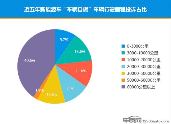 从车辆行驶里程维度来看,有40.6%的投诉发生在行驶里程60000公里以上,而行驶里程在30000公里以内出现“车辆自燃”的占比已达到惊人的45.9%。按照中国汽车流通协会最新公布的家用车年均1.56万公里的中位数来计算,那就意味着这些车辆开了不到2年就出现了“自燃”。