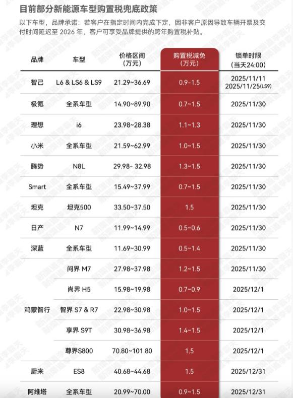 还有卡准 “ 新能源车免征购置税倒计时两个月 ” 的节点,不少汽车品牌纷纷推出 “ 购置税兜底 ” 政策。