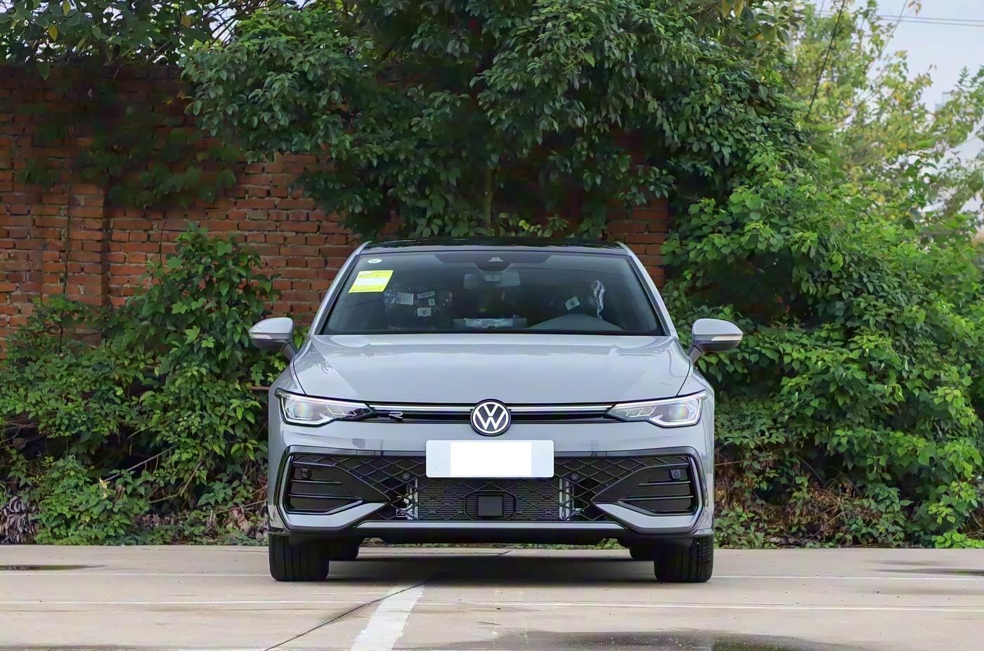 我们首先来看新车的外观设计方面,2026 款高尔夫延续家族简约运动设计,车头线条干练且富有张力。标志性的横幅式进气格栅与大灯组融为一体,普通版采用三条幅镀铬饰条点缀,而 R-Line 版本升级为菱形网格状熏黑散热开口,运动气息更浓郁。全系标配的 LED 大灯棱角分明,贯穿式日间行车灯横向延伸,与格栅饰条形成视觉联动,夜间点亮时辨识度拉满。前保险杠设计兼顾功能性与美观度,两侧大尺寸进气口优化了散热效率,下方黑色防刮护板增强了实用性。值得注意的是,高配 R-Line 车型独享 IQ. Light 灵眸矩阵大灯,支持随动转向与智能动态灯光辅助,可根据路况自动调节光型,而普通版则为基础 LED 自动大灯。