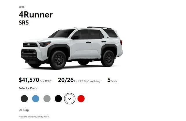 与兰德酷路泽相比丰田4Runner更加简洁原始,但是它又是与普拉多同平台打造而来,所以我们可将它视为普拉多的越野版本,而且丰田4Runner还融入了丰田众多的新技术,不管是越野性能、底盘都要比普拉多更加激进。近日我们从海外媒体处获悉2026款丰田4Runner SR5正式发布,新车售价为41750美元,约合人民币29.6万元。
