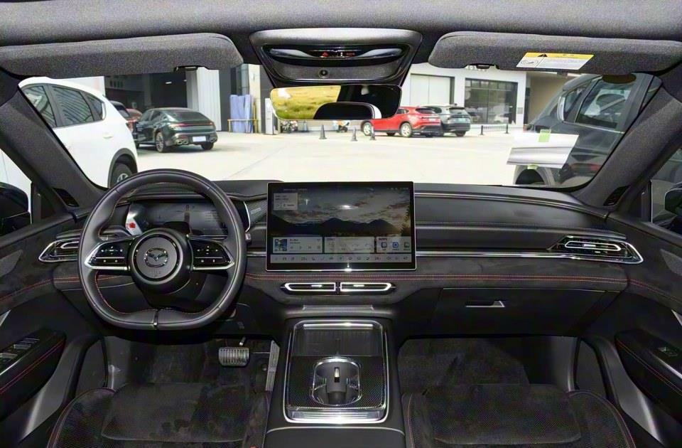 来到前排,整个中控台属于简单、耐看的类型,传统T型对称式的布局,悬浮式多媒体屏幕的尺寸达到了14.6英寸,液晶仪表盘的尺寸为10.1英寸,车机功能还是比较丰富。而在配置上,2026款马自达EZ-6全系标配9个安全气囊、360度全景影像,部分车型还有L2级驾驶辅助系统、碰撞预警、主动刹车、全速自适应巡航、车道偏离预警、开门预警等配置。