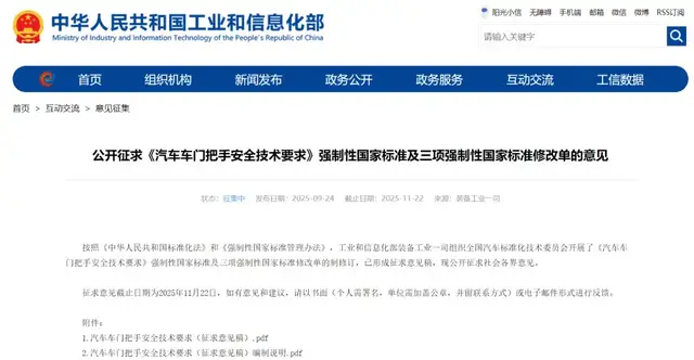 9月24日,工业和信息化部装备工业一司对《汽车车门把手安全技术要求》强制性国家标准及三项强制性国家标准修改单公开征求意见,其中明确规定了车门门把手相对车身表面应具备的手部操作空间标准,剑指曾造成诸多安全事故的隐藏式车门把手。