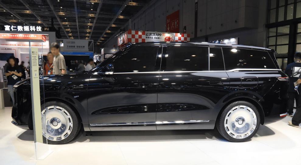 车身侧面才是智己LS9能够真正彰显气场的部分,车身长度5279mm,轴距3160mm,就是一款标准的大型SUV,给力的车身尺寸再加上方正敦厚的车身形态,充分彰显出一款旗舰级SUV该有的庄重与气场,同时为打造宽敞空间奠定基础。笔直腰线贯穿车身,隐藏式门把手与车身融为一体,这些都是当前市面上比较常见的设计元素,在官方公布的官图中,我们看到智己LS9提供了一款封闭式大饼状轮圈造型,再次提高车身豪华气息,未来应该还会有其他样式可选。
