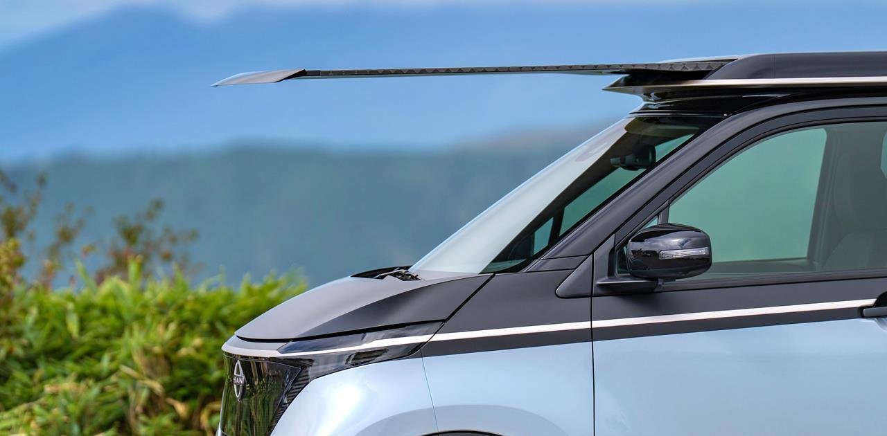 日产汽车发布一款可搭载于旗下小型电动车 “樱花(Sakura)” 的车载电动滑动式太阳能发电系统 ——“Ao-Solar Extender(青 - 太阳能扩展器)”。