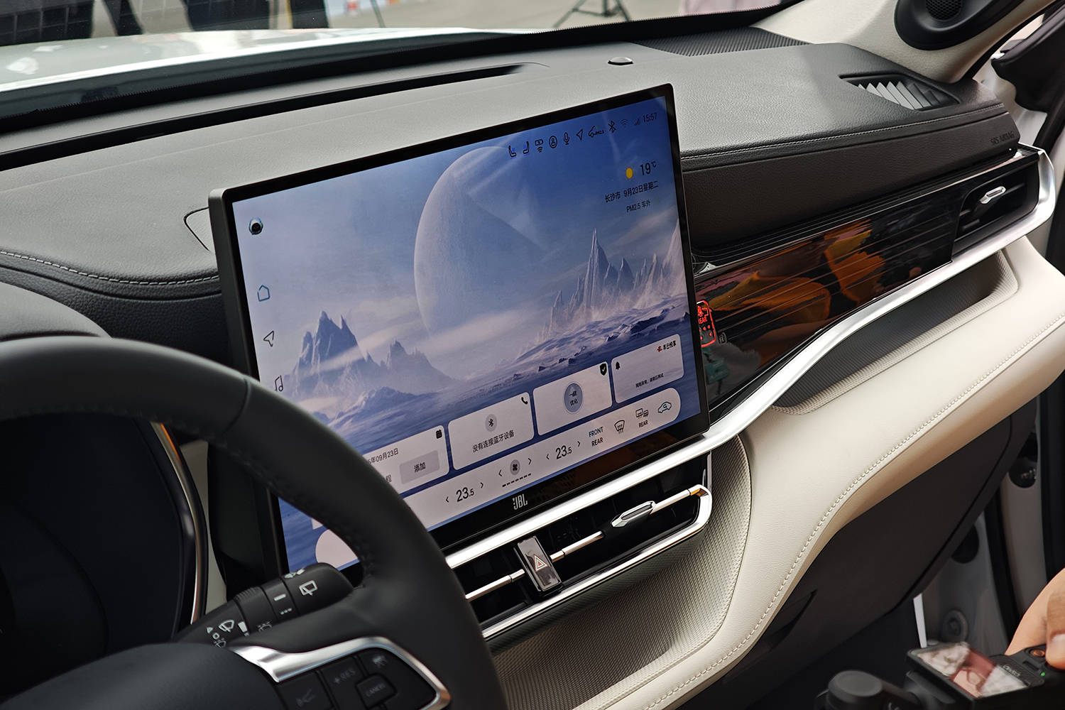 配置方面,入门版车型针对车机系统进行升级,与中高配保持一致,全系车机系统标配12.3英寸中控屏,尺寸从10.25英寸升级到12.3英寸,增加可见即可说语音控制系统,增加Carlink互联,车机配备高通骁龙8155P芯片。2.5L双擎两驱尊贵版(原2.5L混动尊贵版)及以上配置车型,增加透明底盘、倒车车侧预警、并线辅助、蓝牙钥匙、前排无线充电。