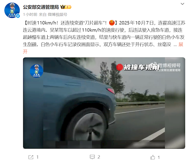快科技11月12日消息,日常中驾车,超车要给自己和后方车辆留足安全距离,并且不能连续变道超车,否则极易发生安全事故。今日,公安部交通管理局就通报了这样一起典型案例。
