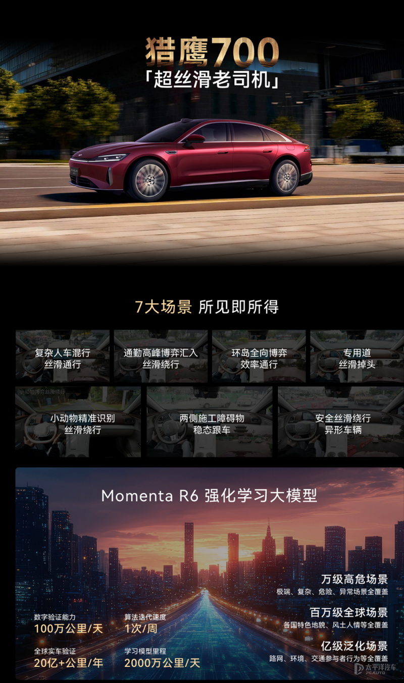 4.辅助驾驶:搭载猎鹰700驾驶辅助系统,配备高通骁龙8620芯片(128 TOPS)和1颗激光雷达在内共27颗高精传感器,支持高速/城市NOA、智能泊车、135km/h高速紧急避障等;