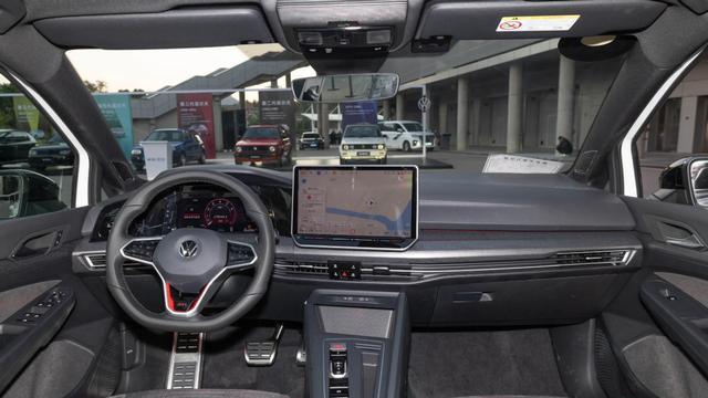 坐进车内,2026款高尔夫GTI依然保持了大众家族化的内饰布局,中控区域整体偏向了主驾一侧,中控台采用了软性搪塑材质包覆,并配有贯穿的金属饰条装饰,细节区域的红色元素点缀也强化了战斗属性。车内配有10.25英寸全液晶仪表盘和12.9英寸悬浮式中控屏的组合,构成了人机交互主要区域,除此之外,经典的格子布座椅得以保留,这也是GTI车系的代表元素。