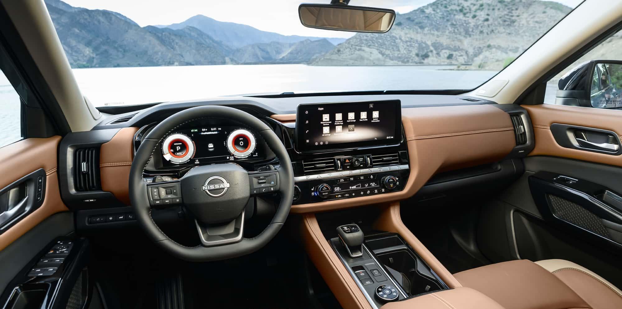 前脸部分,Pathfinder采用了重新设计的保险杠和更扁平、更宽的进气格栅。格栅的造型由此前的菱形格纹改为横向饰条结构。标志性的LED“眉形”大灯得以保留。