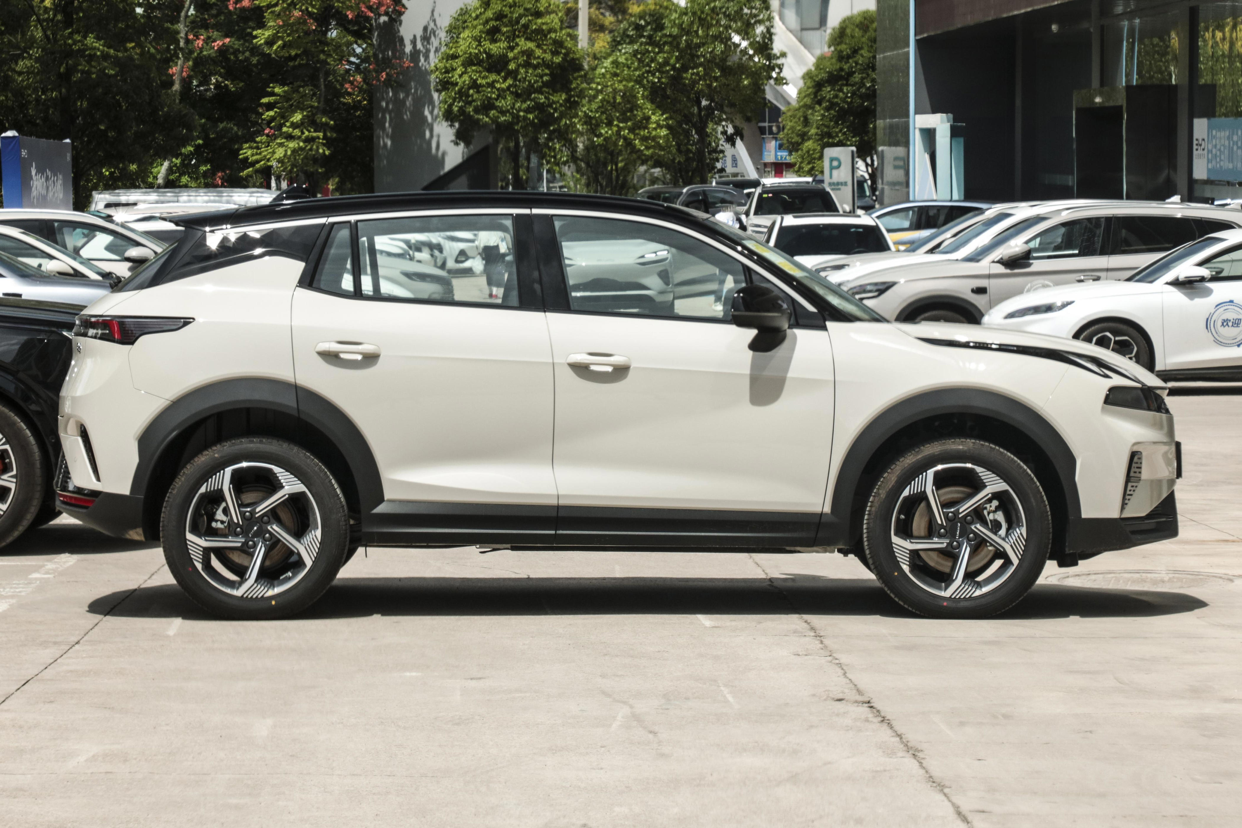 车身侧面线条紧凑灵动,4350mm×1820mm×1625mm的尺寸搭配2640mm轴距,在小型SUV中实现了"短车身长轴距"的黄金比例。悬浮式车顶搭配18英寸双五辐轮辋,进一步强化了运动基因,而隐藏式B柱与C柱的设计则让侧面线条更显流畅。车窗下沿的镀铬饰条从A柱延伸至车尾,与车门下方的内凹腰线形成呼应,为简洁的侧面造型增添了细节层次。