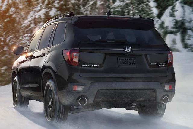 本田Passport限量版在外观方面,还是比较硬核的,透露出一丝野性,中网由黑色六边形格栅组成,日间行车灯采用钩子形状,显着比较凌厉,Black Edition版本轮毂采用黑色涂装,提升了整车的运动气息,车顶还提供行李架,车尾的扰流板也是必不可少,尾灯的设计比较简约,并且经过黑化处理,排气采用双出式设计,让车尾显着更加协调。