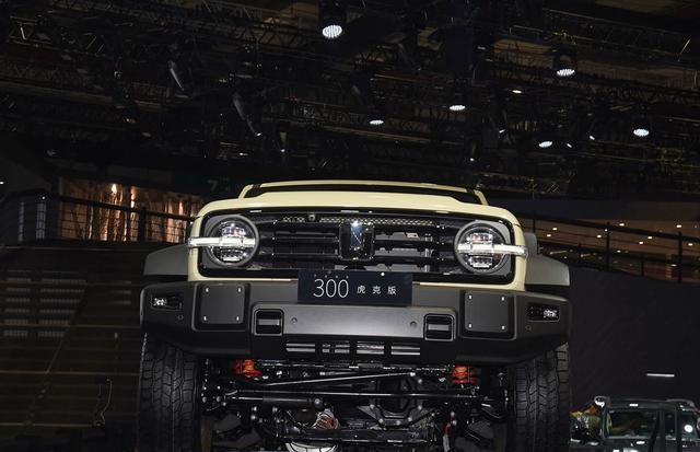 我们首先来看新车的外观设计方面,虎克版的车头设计将硬派基因刻入细节。专属 “沙暴黄” 哑光车漆搭配无漆处理的前保险杠,在保留粗犷质感的同时降低剐蹭维修成本。垂直纹理进气格栅嵌入横向镀铬饰条,中央 “坦克” 标识与两侧熏黑 LED 大灯形成视觉焦点,日行灯贯穿至翼子板的设计强化了横向张力。功能性上,高强度钢制前杠集成 WARN 绞盘预留位与四组 LED 辅助灯,在极端光照环境下可覆盖 120° 视野范围。引擎盖隆起的四条筋线不仅凸显肌肉感,更优化了发动机散热路径,配合前翼子板新增的通风口格栅,使 3.0T V6 发动机在高负荷越野时能维持最佳工况。