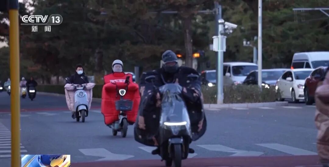 近日,记者在街头看到,电动车骑手们纷纷“全副武装”,从车把固定手套到一体式挡风被,各类防寒装备五花八门。
