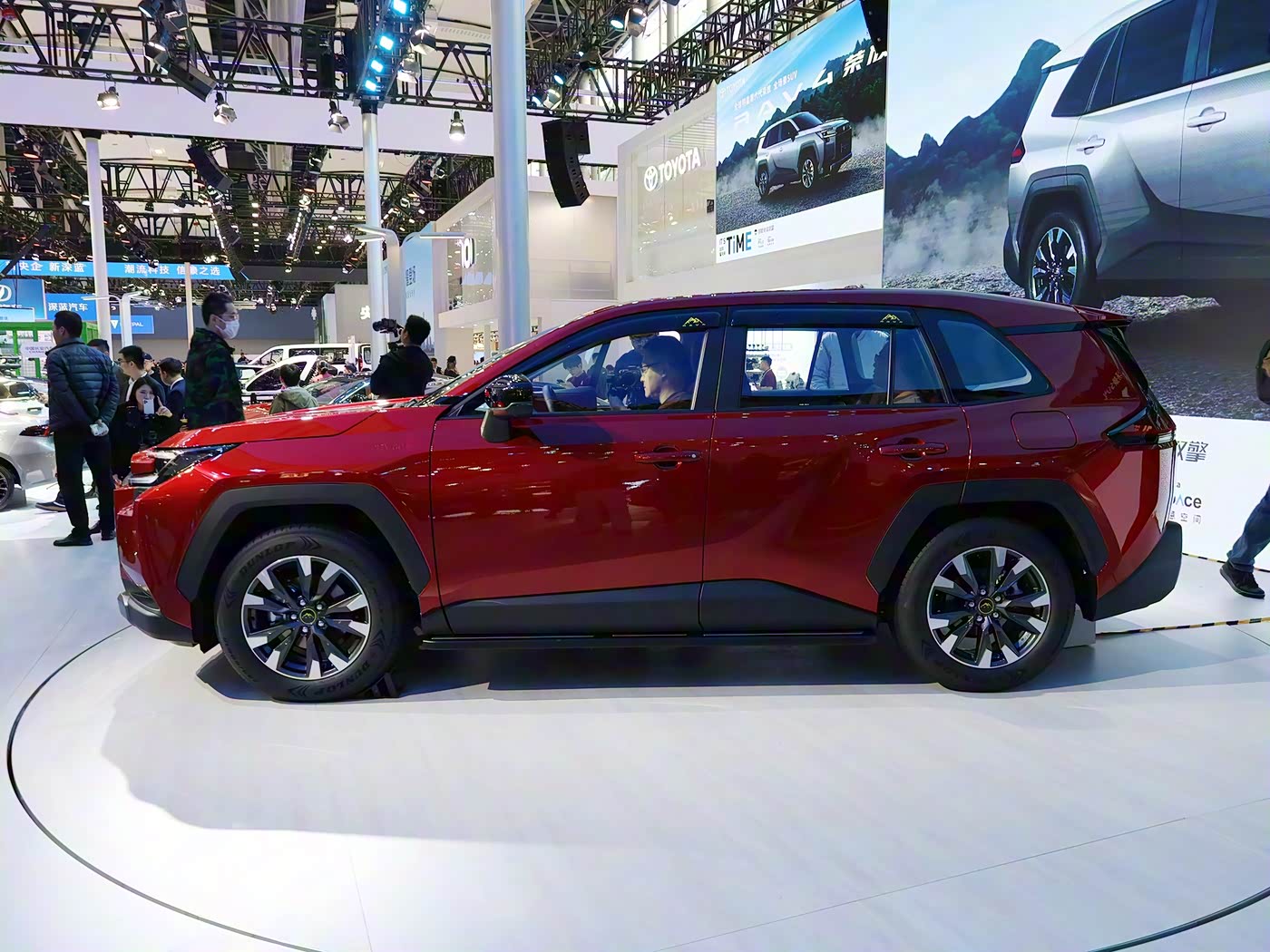再来看车身侧面部分,车身侧面延续了RAV4标志性的悬浮式车顶设计,黑色立柱与车顶行李架形成视觉延伸,使车身更显修长。 腰线从前翼子板贯穿至尾灯,配合略微外扩的轮拱设计,营造出蓄势待发的动感姿态。新车提供17英寸至19英寸三种规格的铝合金轮毂,其中顶配车型的双色切削轮毂采用低风阻设计,既提升视觉张力又优化了燃油经济性。 车身尺寸方面,新车长宽高分别为4600/1855/1680mm,轴距2690mm,较老款车型在宽度和高度上均有提升,为车内空间打下良好基础。
