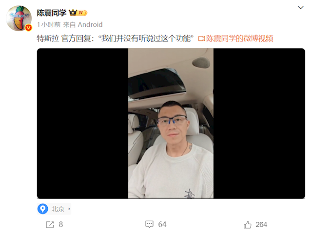 陈震称,但在他转发的另外两段视频中,却没有出现自动落窗的情况,不明白为什么?如果这个功能是最近新OTA升级的,那要给特斯拉个大大的赞。