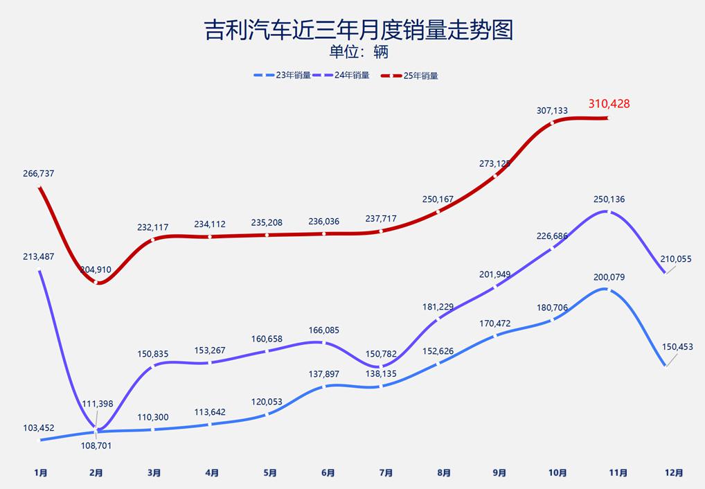 随着银河 V900 等新品的陆续交付,以及接下来吉利全球全域安全中心的即将发布,吉利有望在年底冲刺阶段再创佳绩,为 2025 年画上圆满句号。而明年作为吉利的又一产品大年,多款更有竞争优势的新品上市,也为 2026 年的持续增长奠定坚实基础。