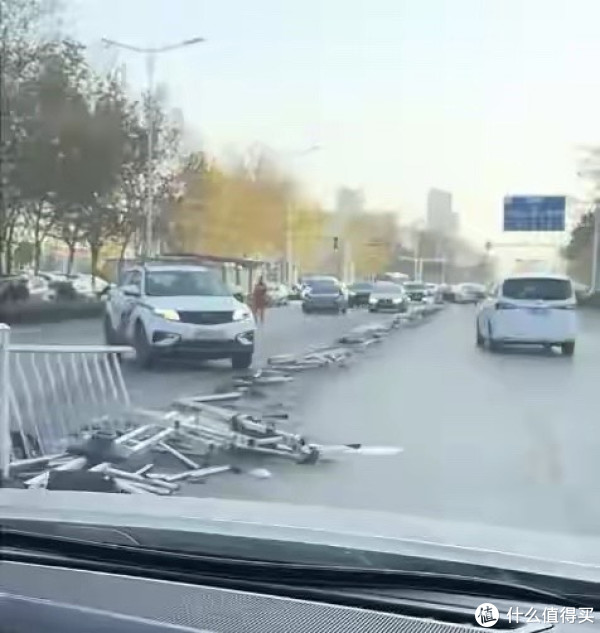 更无奈的是周边被波及的车辆,有的挡风玻璃被护栏碎片砸出窟窿,有的车门明显凹陷,还有车辆后视镜被撞落。初步统计,受损车辆超过十辆。