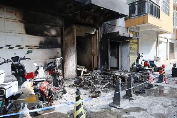 火灾导致现场5辆电动自行车被烧得只剩框架,2辆车身部件扭曲变形,整栋楼外墙被熏得黢黑。据了解,本次火灾由违规改装的电动自行车电池,在飞线充电的过程中发生故障引发。