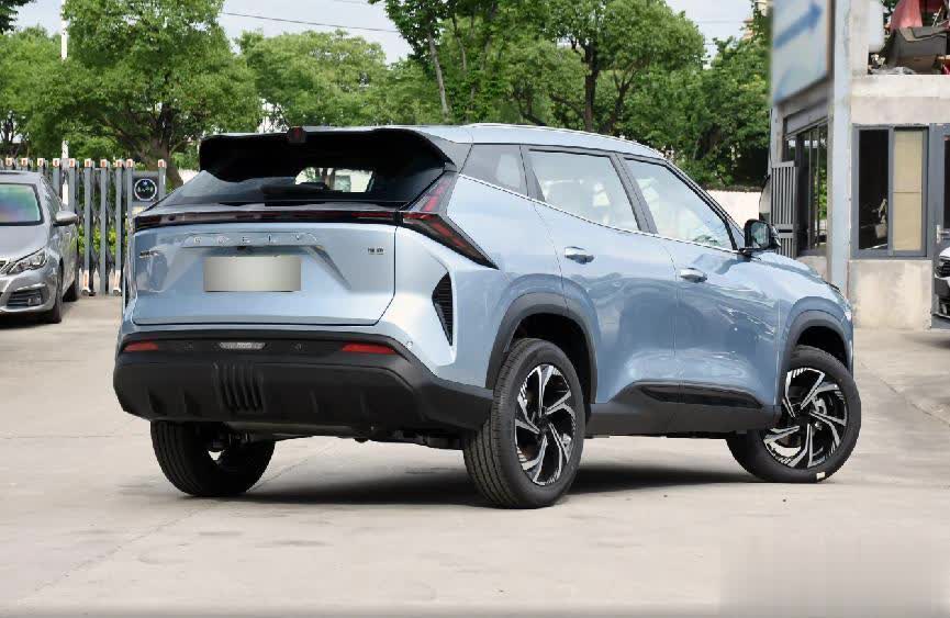 在吉利新博越的侧面,采用流畅的车身线条装饰,消费者能够感受到较强的运动气息。这款车型的车窗下边缘逐渐上扬,所以其三角窗位置的尺寸很小,搭配逐渐上扬的腰线,能够给人较强的运动气息。这款车型的轮毂造型也比较独特,进一步提高整车的运动属性。不过这款车型并没有采用潮流的隐藏式门把手,拉环式的门把手难免会让人觉得它有些过时。
