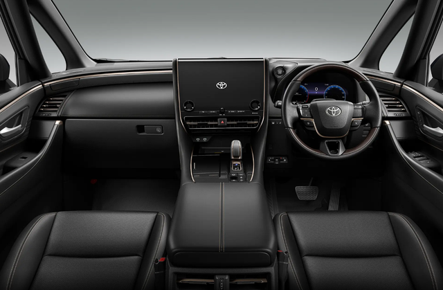 丰田威尔法在内饰方面,主打沉稳,商务,提供黑色和棕色可以选择,方向盘采用双拼材质,新款车型在内饰一些细节还增加了金色装饰件,提升了精致感,内饰还增加了缝线处理,空调操作区采用触控式。