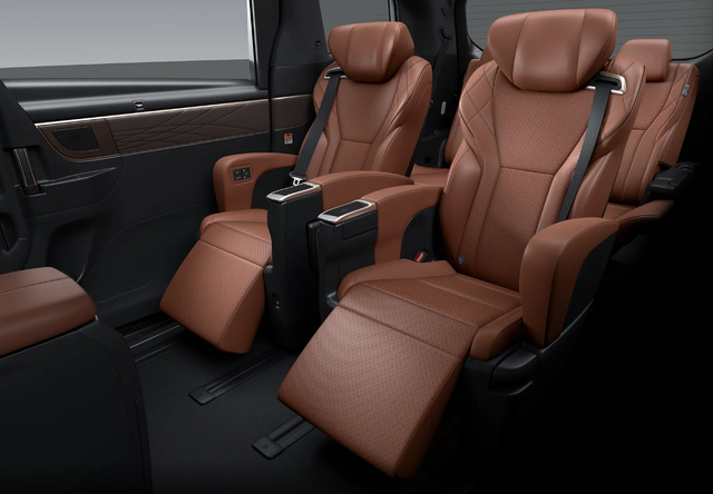 丰田威尔法定位中大型MPV,整车的商务气息还是相当足的,有着不错的气场,轮毂采用黑色多幅式设计,运动气息也是比较足,第二排和第三排还提供隐私玻璃,第二排的侧滑门均采用电动开闭,车尾还提供运动扰流板,尾灯下方还提供品牌字母标识,座椅采用7座布局。