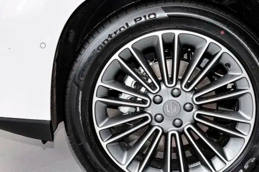 车身侧面比例协调,是C16外观的亮点。腰线从前大灯延伸至尾部,线条流畅且不过分夸张。隐藏式门把手与悬浮式车顶设计提升了科技感,而低风阻轮毂和车身同色包围让整体感更强。车窗边框及后视镜底部加入银色饰条装饰,细节拿捏得体,不显突兀。从比例上看,C16虽然是一台六座SUV,但设计团队很好地控制了车身厚重感。尤其是车顶线条在C柱位置略有下沉,使尾部显得更紧凑;腰线与窗线的上扬趋势也拉长了视觉比例,避免了MPV那种“方正笨重”的印象。