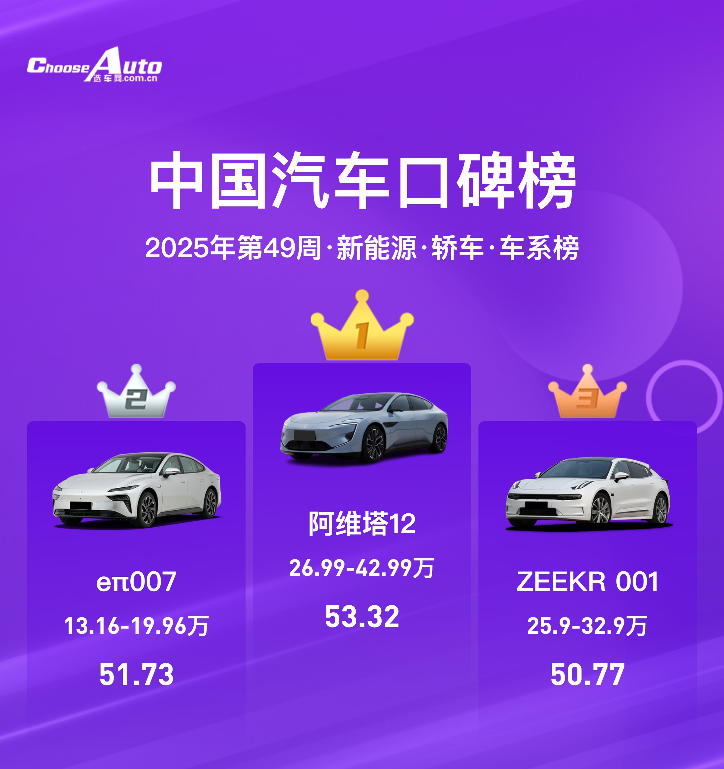 中国汽车口碑榜:2025年第49周新能源车型排名解析