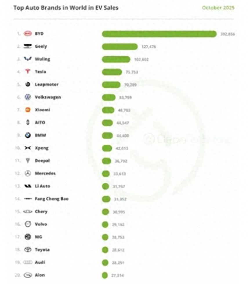 2025年10月全球汽车销量榜单的出炉,让整个行业为之震动:特斯拉虽仍握着全球第一的市值(近一万五千亿美元),但实际销量却滑落至第四位,仅卖出七万多台;而榜单前三甲被比亚迪、吉利、五菱三大中国品牌包揽,小米、零跑等新势力也强势跻身前列,中国车在全球市场的崛起已成不可逆转的趋势。这场“中国车企集体突围、特斯拉位次下滑”的变局,绝非偶然,而是技术路线、市场洞察与全球化布局多重作用的必然结果。