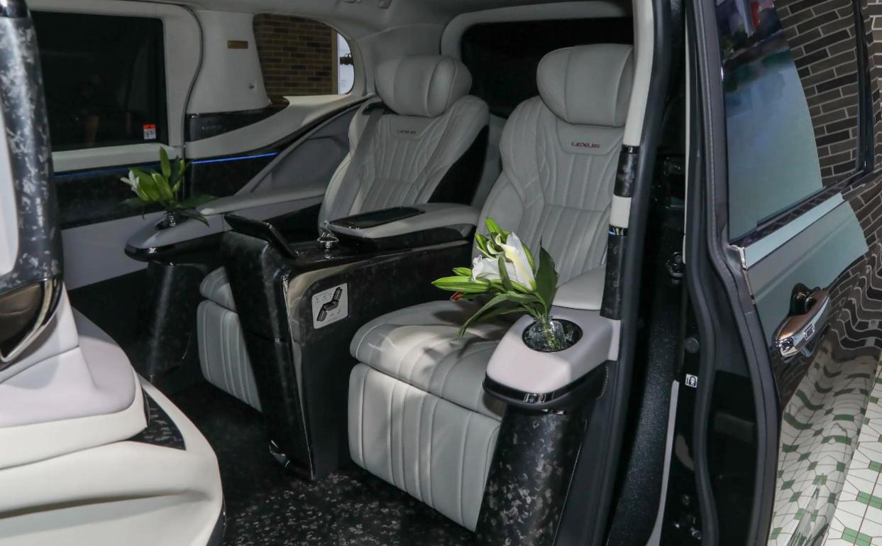 第二排拥有两个独立的座椅,非常尊贵。此外,车载冰箱,后排影音电视更是一应俱全。更为关键的是,第二排还拥有大尺寸的4K显示屏,将驾驶舱与乘员舱进行了间隔,真正堪称“陆地头等舱”,极其的奢华。