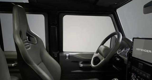 内饰方面在经典车型的基础上进行了现代化升级,比如新增了中控大屏,为此还重新调整了中控布局。不过整体还是经典车型的风格,车内保留了大量的物理按键,而且尺寸都不小,这也算是传统硬派越野车的优点,便于查看,适合盲操。座椅改成了赛车桶椅的样式,多少有点不协调感。另外,内饰颜色可以选择与车身同色的材料。