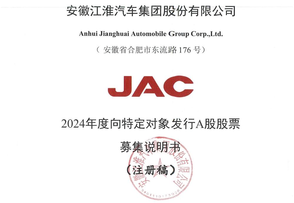▲江淮发布 2024 年度向特定对象发行 A 股股票募集说明书