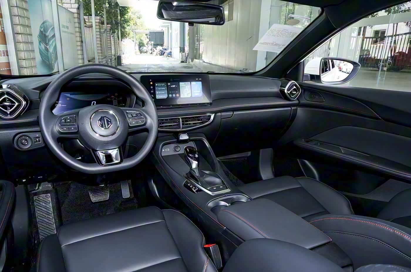 再来看车身侧面部分,车身侧面是MG5最吸睛的部分。Fastback溜背造型从B柱开始流畅下压,风阻系数优化明显,在降低风噪的同时提升了高速稳定性。双腰线设计是点睛之笔,上部腰线贯穿门把手,下部线条向上扬起,形成蓄势待发的运动姿态。车身尺寸为4715/1842/1473毫米,轴距2680毫米,,属于同级主流水平。但通过优化座椅布局,后排腿部空间仍能轻松容纳三名成年人,头部空间也未因溜背造型而牺牲太多。此外,全车超过20处储物空间设计,包括门板杯架扩容至1.5L容量,中央扶手箱内置空调出风口,实用性大幅提升。