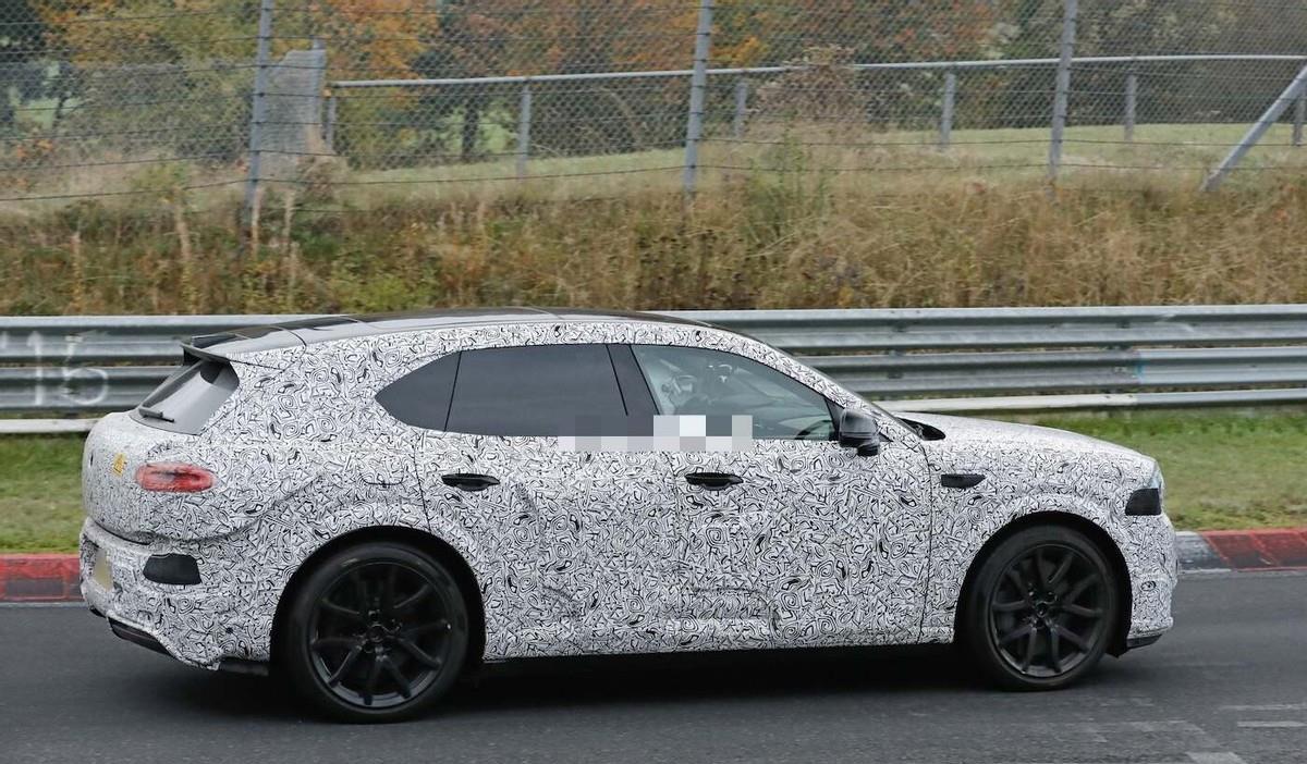 在镜头中,我们看到了一台完全伪装者覆盖的宾利测试车,从车身形态上其实就能判断出它是一台SUV。车头设计当中,我们似乎看到了四个圆形大灯组,就跟在宾利添越所使用的一样。不过,通过对伪装车衣、结构轮廓等情况判断,这其实是宾利有意在误导拍摄者。近距离来看,能明显看到车头两侧的大灯结构是以比较规整的多边形边框呈现的,甚至我已经能从中判断出LED日行灯带、转向灯带等设计,而实际头灯很可能采用与新一代保时捷卡宴相同的X矩阵,这无疑会让这台宾利看上去更新潮、更前卫一些。