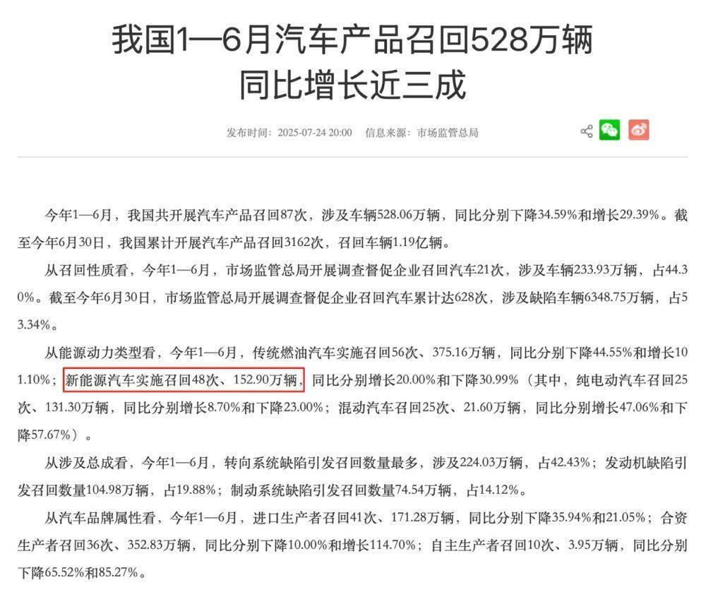 在2025年1-11月份,多家主流车企接连向监管局备案了召回计划,涉及车辆累计超200万辆。