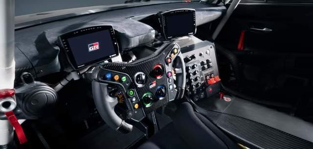 侧面的通风口和下侧门槛仿佛直接取自GT3赛车。车头上还莫名其妙地写着丰田,但几乎像卡通一样。至于和GT3的比较,是有原因的。Gazoo Racing与GR GT3赛车版本同时开发了这款赛车。两款车型共用悬挂部件和动力系统的双涡轮增压V8部分。