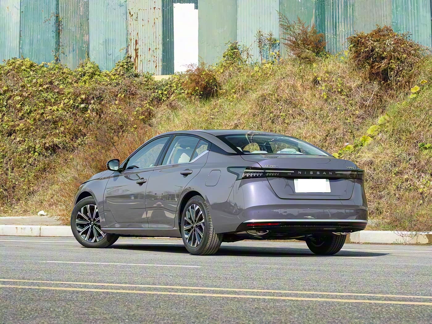 再来看车尾部分,车身侧面,天籁采用了双腰线设计,上腰线从车头一直延伸至车尾,下腰线则在门把手处形成上扬趋势,这种设计不仅增强了整车的层次感,更在视觉上拉长了车身比例。车顶线条流畅,从B柱开始缓慢下滑,形成了优雅的溜背造型,既保证了后排头部空间,又提升了整车的运动气息。尺寸方面,天籁的长宽高分别为4906/1850/1447mm,轴距2825mm,这样的车身尺寸在B级车中属于主流水平,为车内空间提供了良好基础。 车窗周围采用镀铬饰条点缀,搭配17英寸多辐式轮毂,进一步提升了整车的精致感。