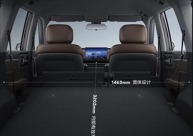 车辆内部有效车长达3202mm,拥有1463mm的超宽体设计。车内空间灵活前排座椅可180°大角度放平;后排支持4/6分比例放倒且靠背可调至125°。